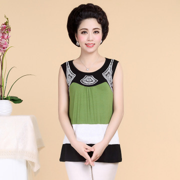 2015中老年新款女夏裝中年女士媽媽裝無袖T恤相色老年人吊帶背心 /