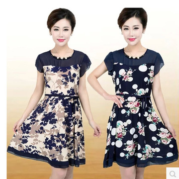 2015中老年女裝夏裝短袖中長款連衣裙中年人大碼媽媽裝修身裙子 /