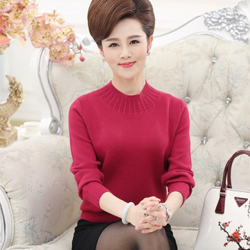 秋冬季新款韓版休閑舒適中年媽媽套頭打底衫時尚女式套頭長袖毛衣 /