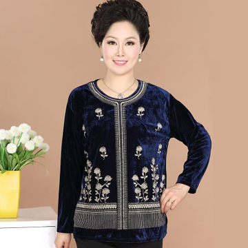 五個型四個色 中老年女裝春秋打底衫金絲絨上衣媽媽裝長袖T恤 /