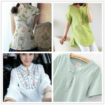 2015外貿(mào)大牌原單雜款秋夏新款大碼女裝復(fù)古印花寬松棉麻女上衣 /