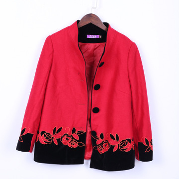 仨星報福2015年中老年秋季新上灰色繡紅花 女士外套 /
