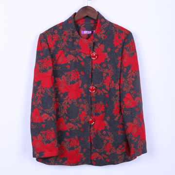 中老年媽媽裝 紅色立領(lǐng)中式外套 /