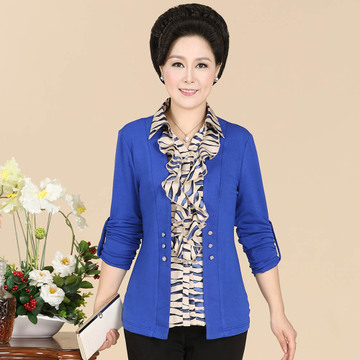 2015中老年新款女裝 中年媽媽裝假兩件長袖t恤 休閑媽媽裝t恤批發(fā) /