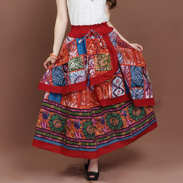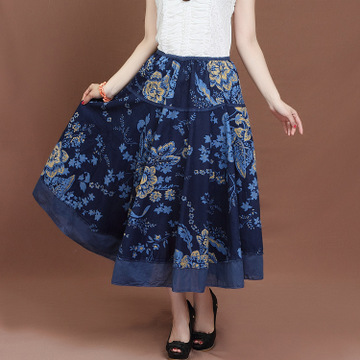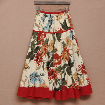 • 批發(fā)半身裙 復(fù)古民族風(fēng) 棉麻花色大擺長(zhǎng)裙  夏季女亞麻裙廠家直銷 /