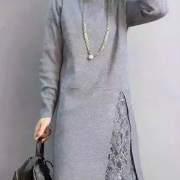 2015秋冬裝新款韓版中長(zhǎng)款蕾絲拼接下擺開叉打底針織衫女士毛衣 /