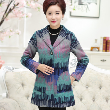 中老年女裝秋裝大碼外套冬季毛呢大衣中 長款媽媽裝長袖毛呢8101 /