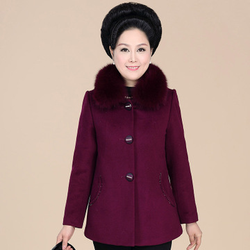 中年大碼厚呢子秋冬裝外套媽媽裝羊絨大衣毛呢中老年女裝羊毛風衣 /