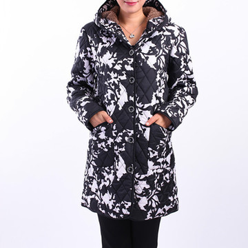 時(shí)尚絎格女款中長(zhǎng)款帶帽毛里棉衣中老年媽媽加肥加大女裝棉服批發(fā) /