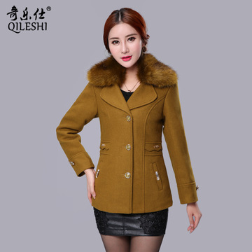 中老年媽媽裝羊絨大衣女短款修身加厚狐貍毛領(lǐng)毛呢外套女單排扣 /