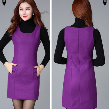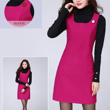 2015秋冬季新款女裝無袖毛呢背心裙馬甲打底裙女士連衣裙批發(fā) /