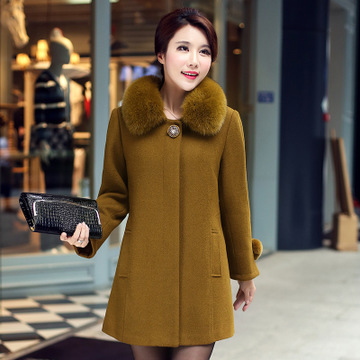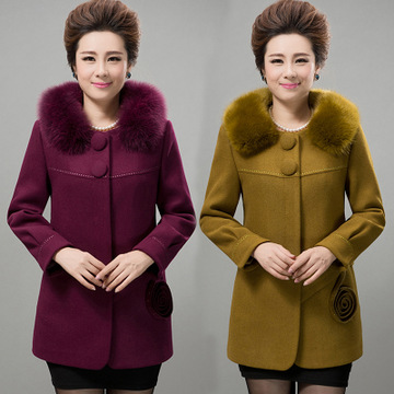 2015中老年女裝冬裝新款毛呢外套 中年媽媽時(shí)尚大碼羊毛呢子大衣 /