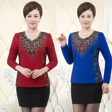 中老年長(zhǎng)袖T恤加絨加厚女裝秋冬媽媽裝蕾絲保暖內(nèi)衣中年打底衫 /