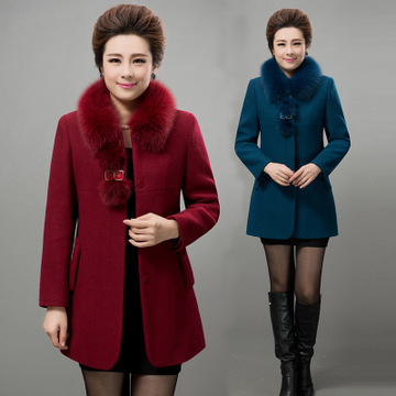 中老年大碼女裝冬裝羊毛呢外套廠家直銷媽媽裝長(zhǎng)款毛領(lǐng)羊毛呢大衣 /