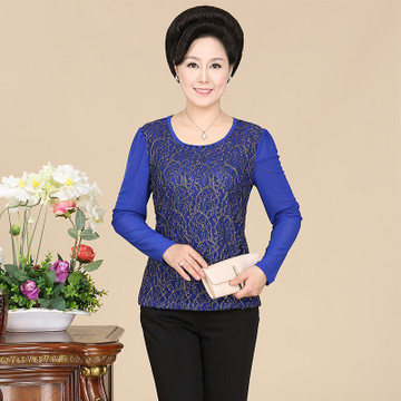 中老年女裝春裝新款T恤 時尚媽媽裝燙金蕾絲打底衫廠家直銷 /