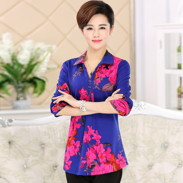 新款女士長袖襯衫夏季中老年女裝大嗎立領(lǐng)中年媽媽裝夏裝打底T恤 /