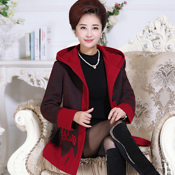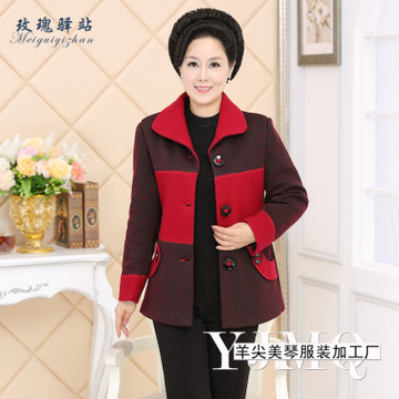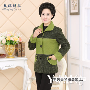 2015新品中老年春秋女裝立領(lǐng)單排扣女士毛呢外套大碼媽媽裝批發(fā) /
