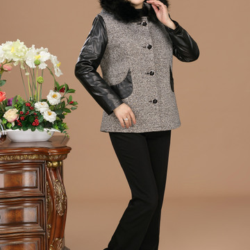 2014新品中老年春秋女裝立領(lǐng)單排扣女士毛呢外套大碼媽媽裝批發(fā) /