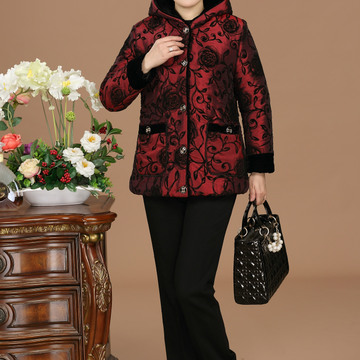 中老年女裝冬裝新款毛領(lǐng)外套加大加絨氣質(zhì)修身媽媽棉襖 /
