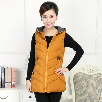 爆款女裝 女式羽絨服 中長款連帽羽絨背心馬甲 中年媽媽裝批發(fā) /