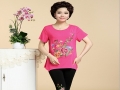 中老年女裝夏裝套裝 媽媽裝短袖T恤 中年女裝莫代爾繡花上衣褲子 /