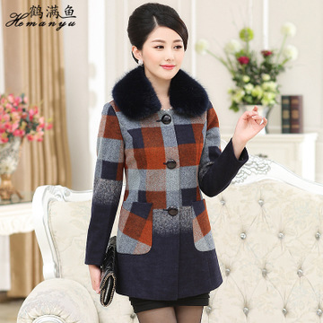 鶴滿魚(yú)中年女裝秋裝毛呢外套 中老年大碼媽媽裝上衣長(zhǎng)袖中長(zhǎng)款 /