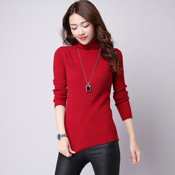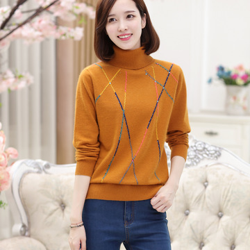 2015新款羊絨衫女裝翻領貂絨毛衣女修身保暖針織打底衫厚超軟 /