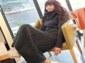 高領(lǐng)堆堆領(lǐng)麻花 新品韓版秋冬修身超長款加厚打底毛衣連衣裙長裙 /
