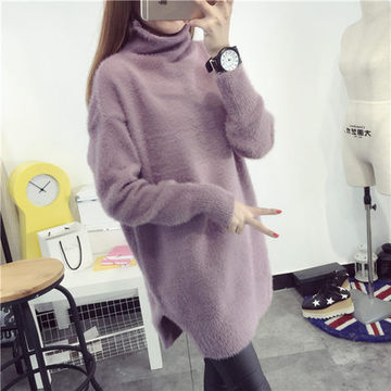 毛衣女套頭高領(lǐng)中長款毛衣裙加厚外套冬季學(xué)生打底衫冬季寬松衣服 /