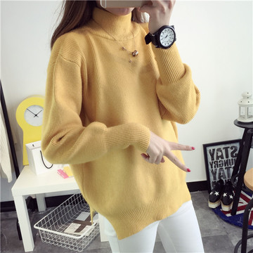 衣服女秋半高領(lǐng)毛衣泡泡袖韓國套頭中長款學(xué)生打底衫毛線衣韓版潮 /