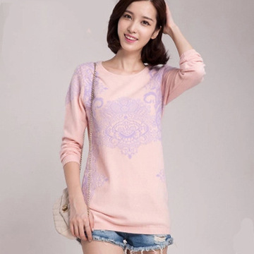 廠家直銷新款女式毛衣套頭中長款針織衫加肥加大碼媽媽裝羊絨衫 /