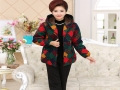 中老年女裝秋裝格子外套媽媽裝連帽加厚加絨棉服短款上衣批發(fā) /