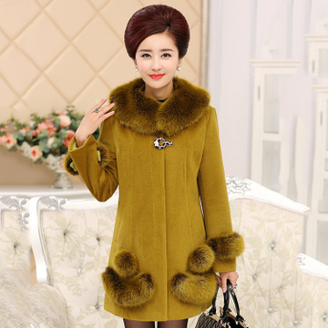 中老年女裝秋裝羊絨大衣媽媽裝秋冬中長款毛呢厚外套中年呢子上衣 /