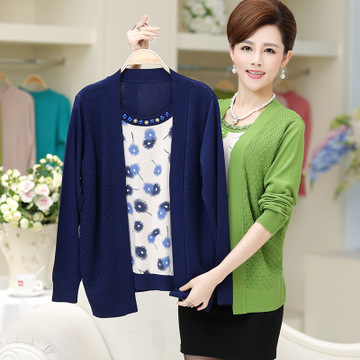 秋冬新款新款針織衫中老年兩件套開(kāi)衫 /