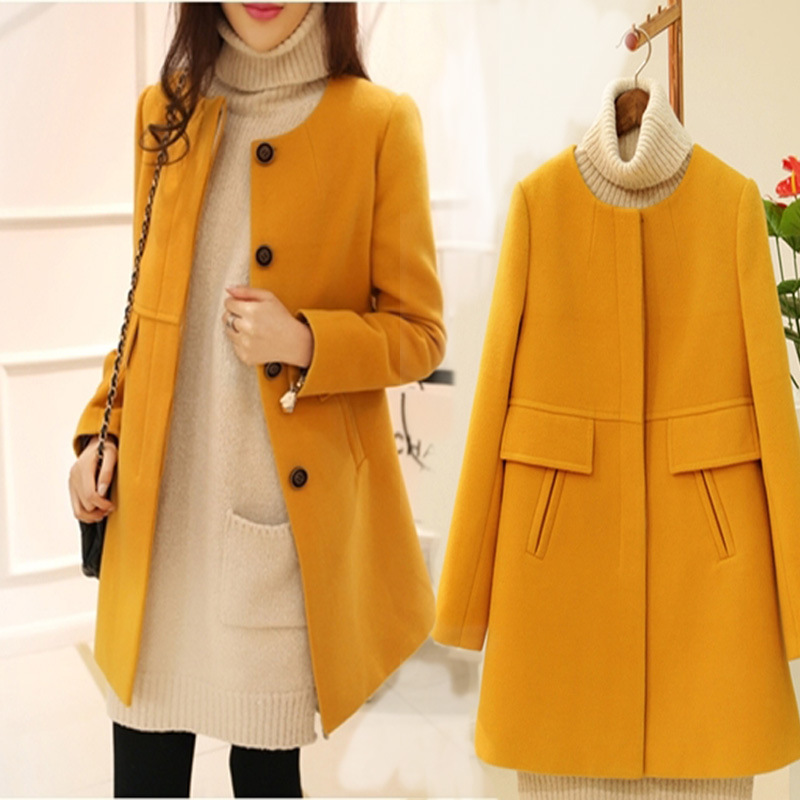 毛絨大衣2015秋裝新款 韓版中長款修身顯瘦雙排扣毛呢外套女 /