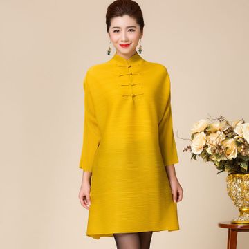 粉紅色4粒扣子連衣裙三宅真絲一生皺褶時(shí)尚春秋外套中老年女裝 /