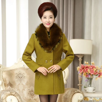 中老年大碼韓版女秋冬裝羊毛呢大衣媽媽裝高檔中長(zhǎng)款毛領(lǐng)羊絨外套 /