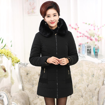 達(dá)爾惠中老年女裝棉衣中長(zhǎng)款媽媽裝冬季外套純色棉襖連帽毛領(lǐng)上衣 /