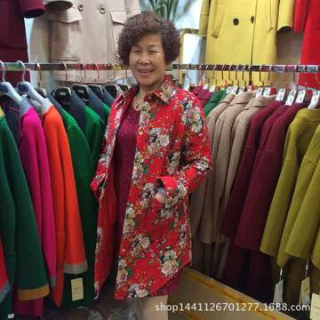 2015冬裝新款中老年花棉襖亞麻女上衣女 /