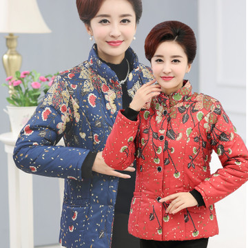 中老年女裝棉衣短款媽媽裝秋冬裝棉服立領(lǐng)中年女裝冬季外套大碼 /