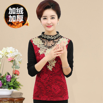 中年女裝秋裝媽媽裝冬裝中老年長(zhǎng)袖t恤襯衫加絨加厚蕾絲打底衫女 /