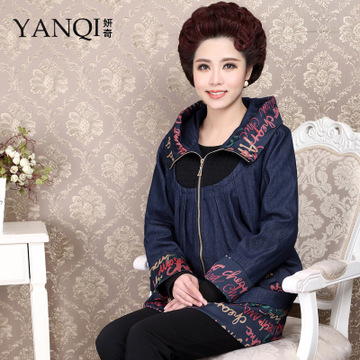 2015新款中老年春秋外套女裝特大碼牛仔外套寬松顯瘦媽媽風(fēng)衣中長(zhǎng) /