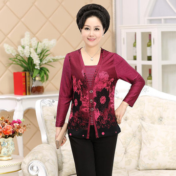 2015夏季新款熱銷女裝 時尚修身氣質(zhì)媽媽裝V領(lǐng)長袖中老年女裝批發(fā) /