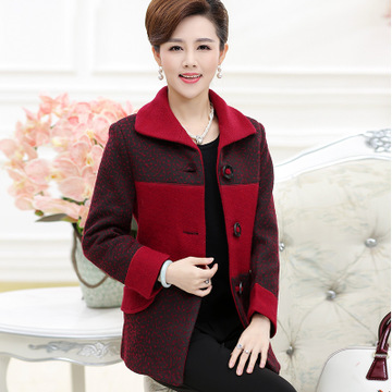 2015中老年女裝秋冬季上衣中年婦女40-50-60媽媽裝老年人毛呢外套 /