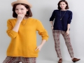 2015熹微冬季新款撞色學院風圓領長袖女士針織衫上衣毛衣廠家批發(fā) /