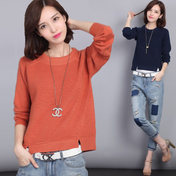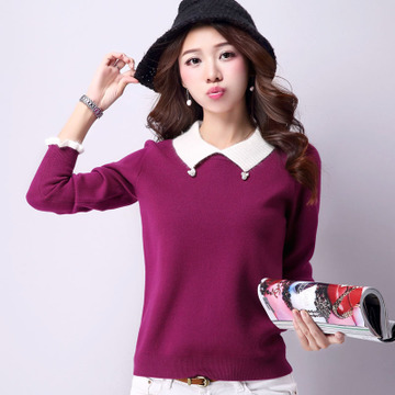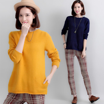 2015秋冬女裝新品上市時尚韓版純色圓領長袖羊毛針織衫 廠家直銷 /