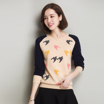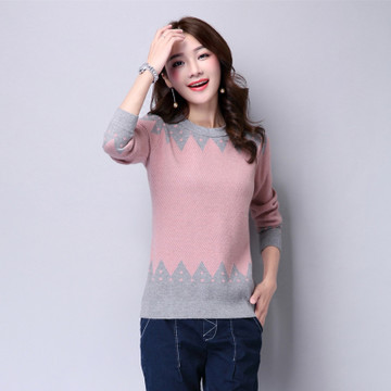 2015休閑百搭圓領全羊毛套頭印花女士秋季經(jīng)典百搭針織毛衣 /