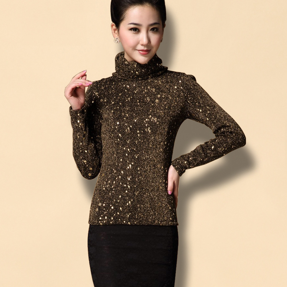 2015秋冬新款中年媽媽裝彈力大碼T恤修身時尚百搭加絨加厚打底衫 /