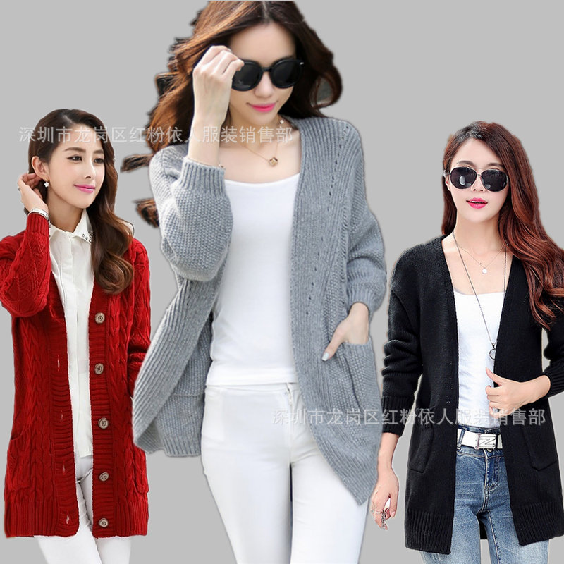 廠家直銷女裝毛衣外套庫存雜款女裝中長款厚開衫女士針織厚開衫 /