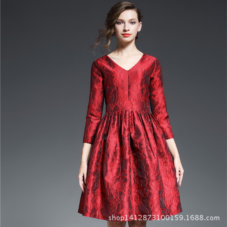 廠家批發(fā)秋冬品牌新款大擺型提花布大擺裙 歐洲站高端女裝連衣裙 /